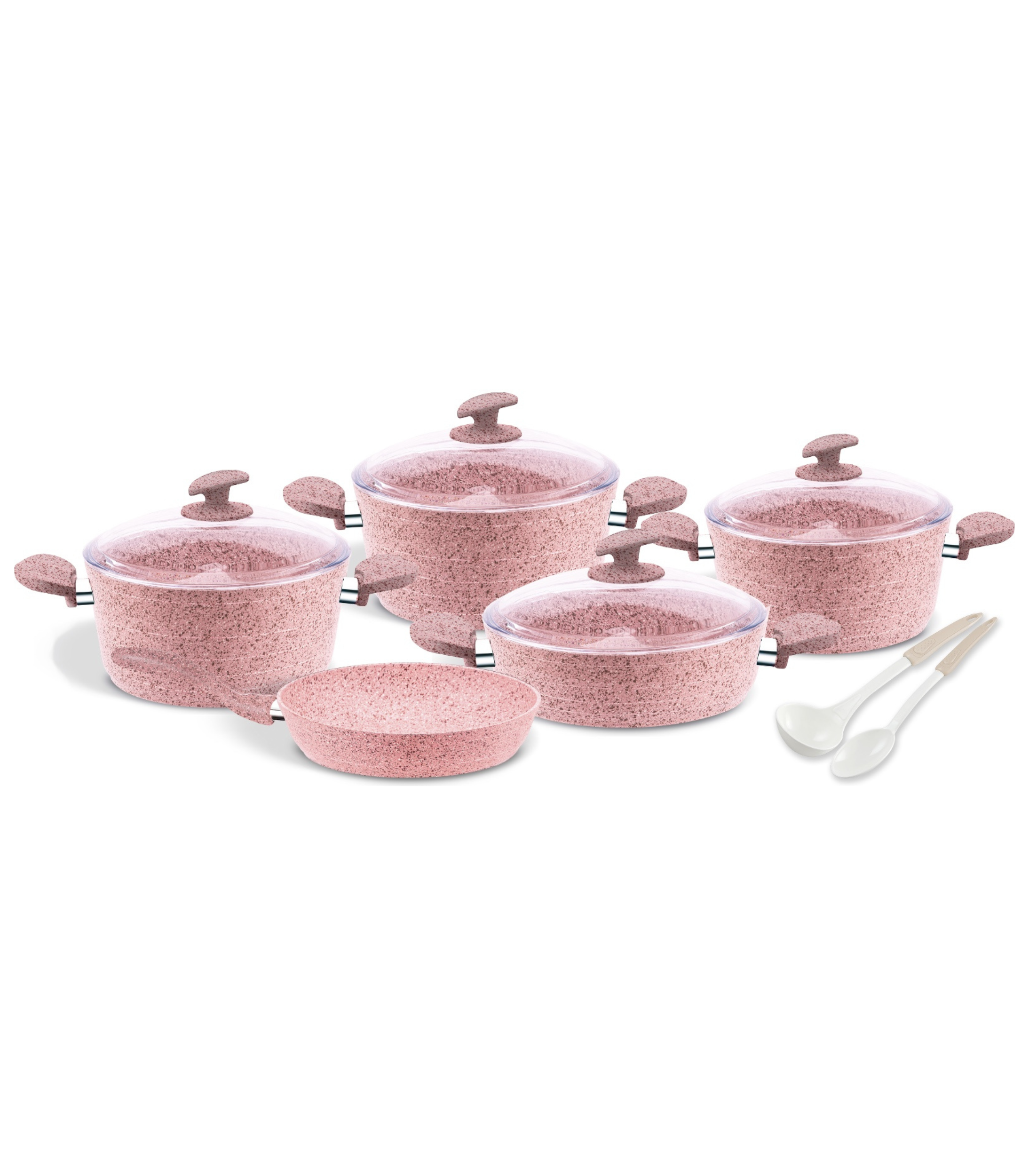 AVCI HOME MAKER GRANITEC 11PCS PINK COOKWARE SET (20CM+24CM+28CM DEEP POT+28CM LOW POT+28CM FRYPAN+1PC SPOON+1PC SPATULA)