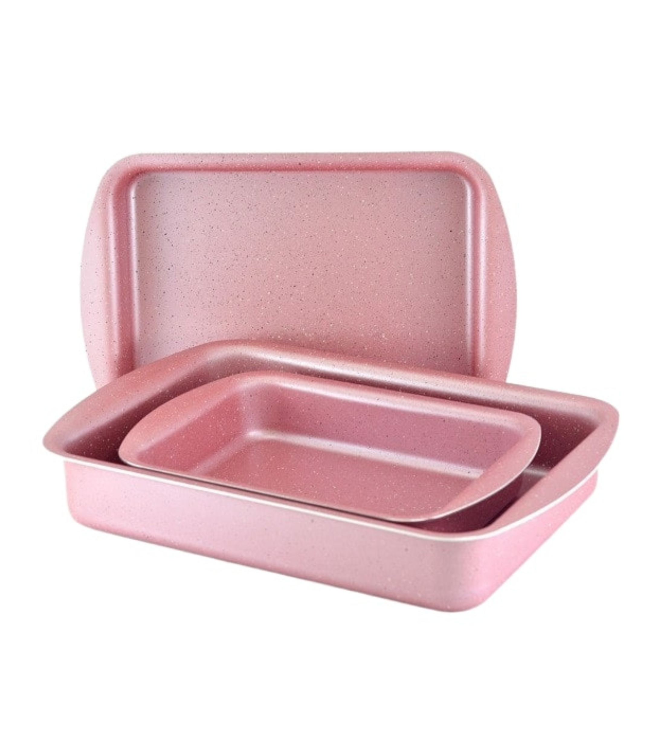 The Avci Home Maker Granitec 3-Piece Rectangular Tray Set in Pink combines elegance and practicality, making it a perfect addition to your serving essentials. With its stylish design and durable construction, this tray set is ideal for serving food, beverages, or snacks with ease and sophistication. This Granitec tray set includes three rectangular trays in varying sizes, crafted with high-quality materials for durability and a modern aesthetic. The non-slip surface ensures items remain secure during transport, while the lightweight design allows for effortless handling. The soft pink color adds a touch of charm to your dining or serving experience, making these trays suitable for both everyday use and special occasions. Easy to clean and maintain, these trays are perfect for enhancing your hosting experience.